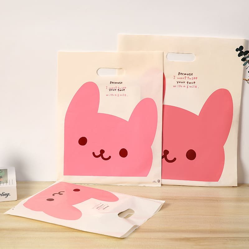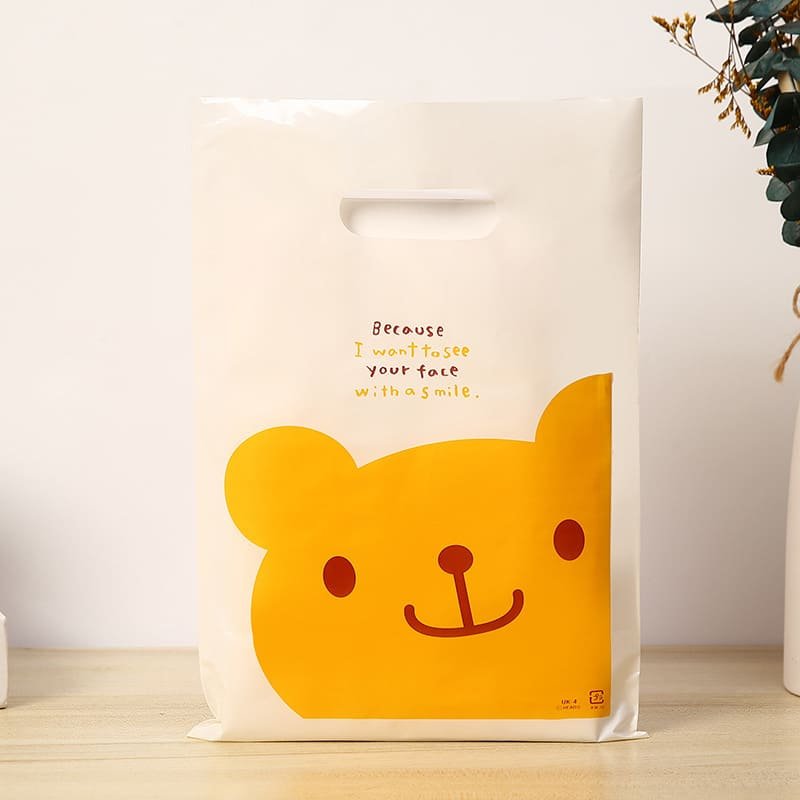 Die cut hand-held plastic bags have good load-bearing capacity and durability and can be made of environmentally friendly materials